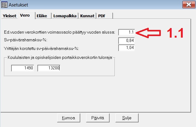 HUOM! Muistakaa, että 1.8.2022 alkaen työttömyysvakuutusmaksun alaikäraja nousee 17 -> 18 . Vaihtakaa asetuksiin ennenkuin kirjaatte tapahtumia palkkakausiin, joden maksupäivä on myöhempi kuin 1.8.2022 .